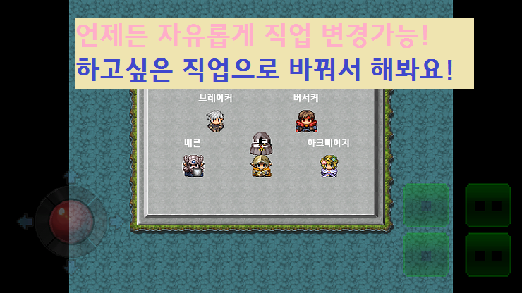 - 전투 시작전 직업을 바꿀수 있습니다. 상황에 맞는 캐릭터를 사용해 클리어해보세요.