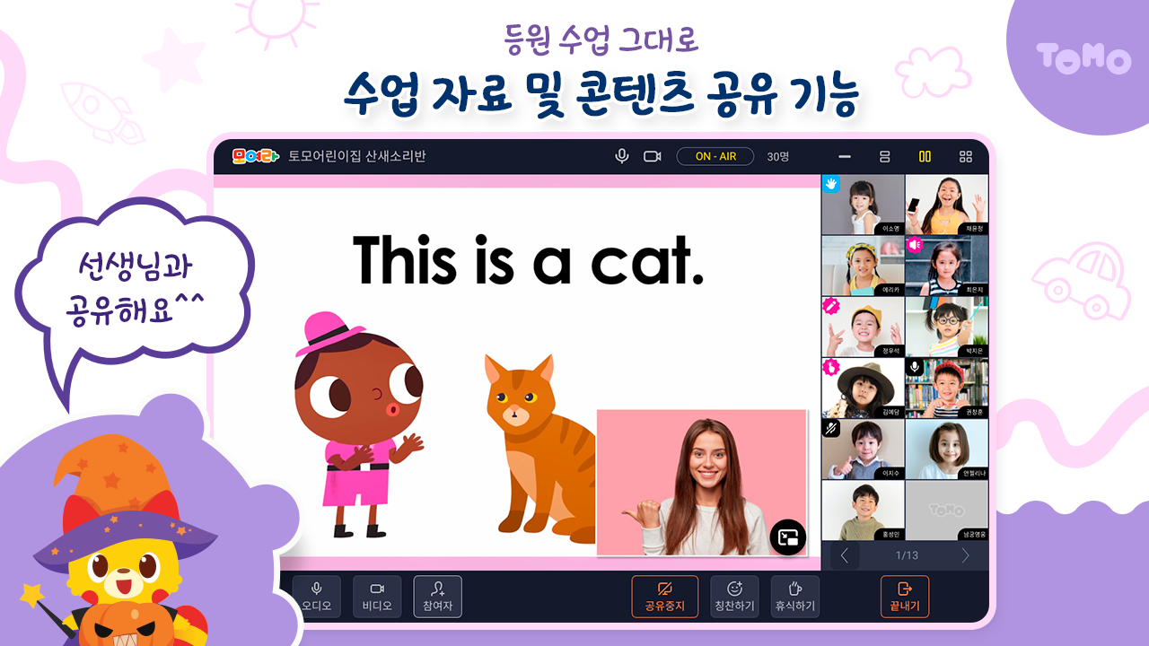 2. When the teacher uses the class material sharing function, two-way communication is possible for children to draw, touch, and write directly on the screen.