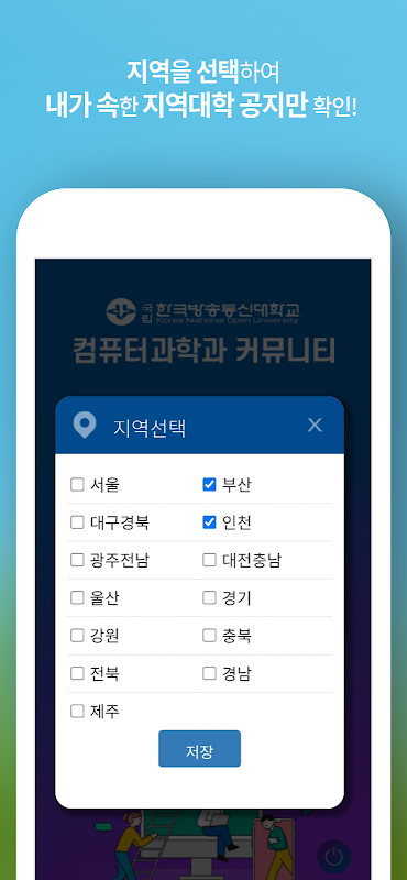 - می توانید لیست اعلامیه های دانشگاه آزاد ملی کره، دانشگاه های منطقه ای، بخش علوم کامپیوتر، مشاوره آموزشی و یادگیری را بررسی کنید و منطقه ای را که به آن تعلق دارید انتخاب کنید.