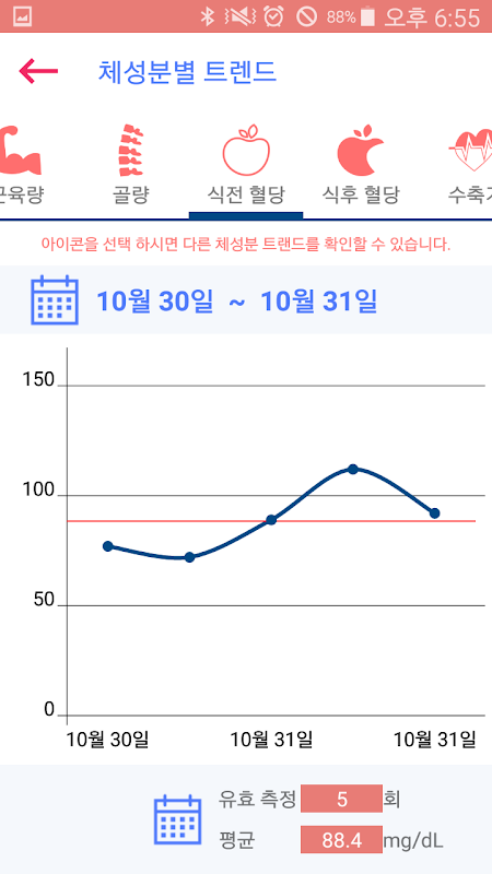 그 밖에 신체데이터 각각은 그래프를 통해 한 눈에 알 수 있고,