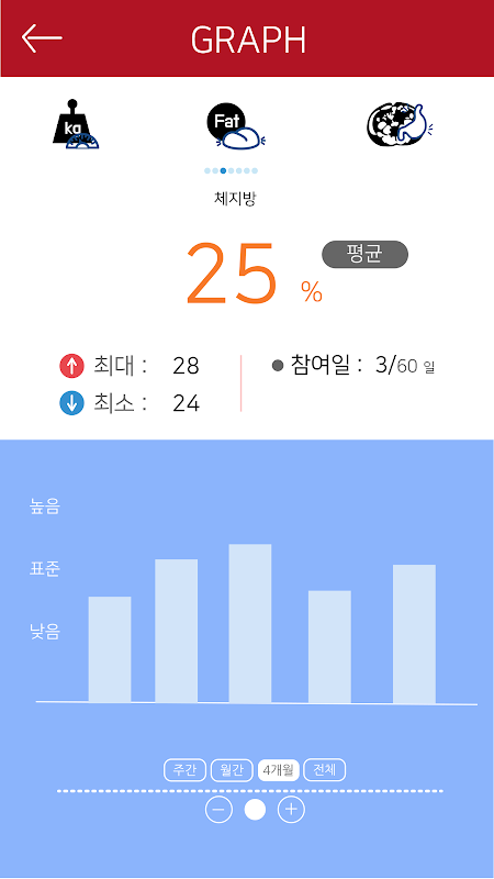 그 밖에 신체데이터 각각은 그래프를 통해 한 눈에 알 수 있고,