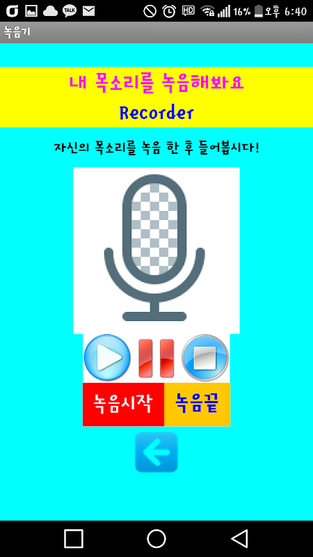 우리는 다문화학생들이 한국에 와서 한국어 공부에 힘들어 하는 모습을 보고 이 앱을 만들게 되었습니다. 이 앱은 특히 다문화 학생들이 많은 우리 이태원초등학교와 같은 초등학교에서 한국어를 공부하는 다문화 학생들을 대상으로 만든 앱입니다. 이 앱의 필요성은, 굳이 종이 한글책을 꺼내서 힘들게 수동으로 할 필요 없이 스마트폰이나 태블릿으로 터치를 하기만 하면, 언제 어디 서나 이해하기 쉽고 재미있게 공부를 할 수 있고, 모든 한국어를 다 배우기보다는, 다문화 학생들이 학교라는 일상생활에서 꼭 사용해야 할 단어만 골라서 너무 힘들고, 싫은 공부보다, 그냥 메모장에다 중요한 단어만 적어 연습한다는 느낌으로 만든 것입니다. 꼭 학생들만을 대상으로 하지 않고 한국에 와서 생활하는 외국인들도 쉽게 사용 할 수 있어, 다문화 학생이나 외국에서 온 사람들이, 한국에서도 어렵지 않게 대화나 생활을 할 수 있어서, 이 앱은 다문화 학생들만이 아닌, 우리 한국에 모든 외국인들에게 유용하다고 생각합니다. 앱의 구성으로는 한글 단어에 대해 공부 한 뒤, 좀 더 재미있게 하기 위한 객관식, 주관식, OX퀴즈를 넣어서, 자신의 실력을 평가하며 게임같이 즐길 수 있게 하였고, 자신의 목소리를 녹음해서 들어보거나 말하는 것을 테스트할 수 있게 하였습니다. 사용법은 복잡하지 않고 간단하여 누구나 쉽게 사용할 수 있게 하였습니다. 부족한 실력으로 처음 만들어본 앱이지만 다문화 친구들에게 조금이나마 도움이 되었으면 합니다.