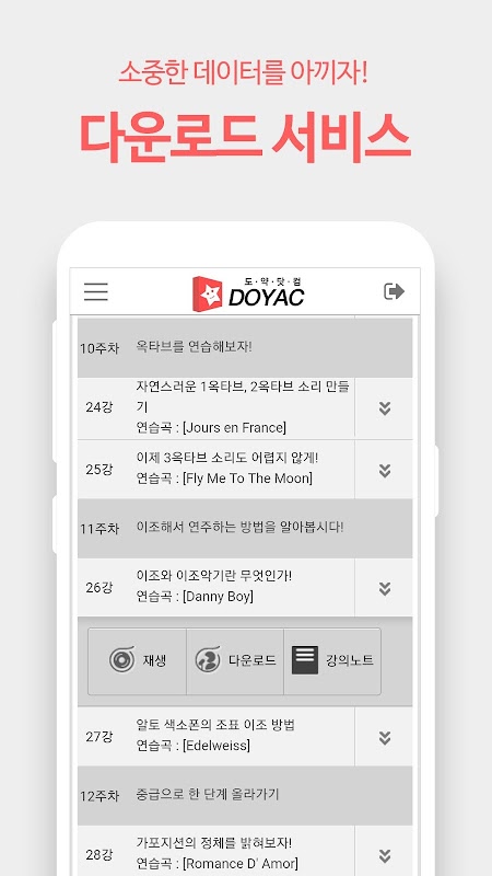 도약닷컴(http://www.doyac.com/m)에서 제공하는 모든 강좌와 동영상 컨텐츠를 고화질 영상은 물론 EPS(Easy Pratice System)이 적용된 영상까지 모바일에서 수강하실 수 있습니다.