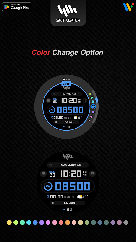 *برنامه تلفن هوشمند یک برنامه اضافی در برنامه Watchface است که راهنمای دانلود را توضیح می دهد. ممکن است با اسکرین شات واچ فیس اپلیکیشن گوشی هوشمند و اسکرین شات واچ فیس که واقعا دانلود شده متفاوت باشد. اکثر محصولات برنامه Watchface SamWatch شامل برنامه هایی برای تلفن های هوشمند است.
