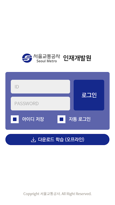 PC환경의 서울교통공사 인재개발원(http://seoulmetro.hunet.co.kr)의 아이디와 비밀번호로 로그인 가능하며, 주요 서비스를 본 모바일 앱에서도 사용하실 수 있습니다.