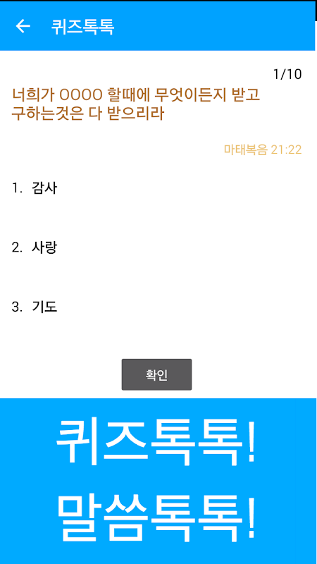 퀴즈톡톡으로 성경구절을 암기해보아요~