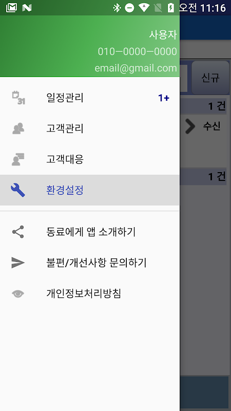 일정관리, 고객관리, 고객 대응관리, 통화내역관리등을