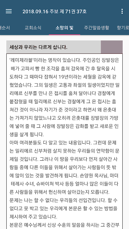 این یک مجله هوشمند 100٪ نرم افزار (برنامه) است که اعضای کلیسای Songmi می توانند مجلات هفتگی را بر روی گوشی های هوشمند خود بجای تابلوهای کاغذی تماشا کنند.