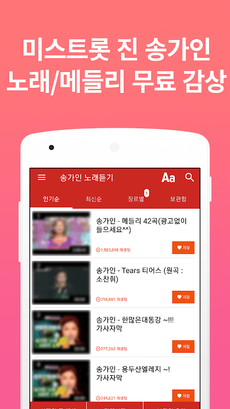 송블리 노래감상 - 히트곡 방송 영상 최신 공연 영상 1.9