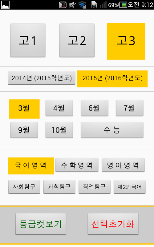 نسخههای قدیمی 수능 모의고사 타이머 - 등급컷 범위 과목타이머