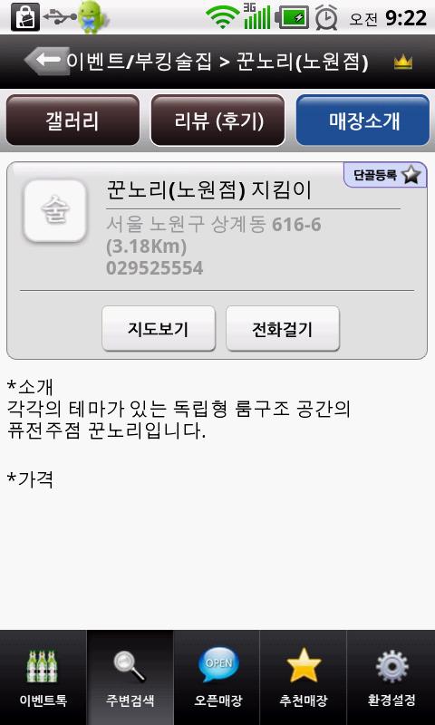앱 사용자는 주변술집 정보 검색으로 위치 찾기와 원터치 전화걸기로 예약및 문의가 가능합니다.