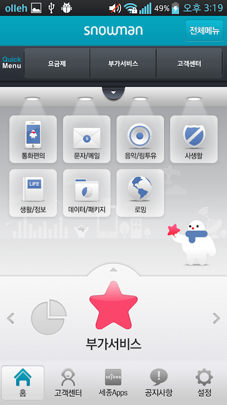 스노우맨은 세종텔레콤에서 제공하는 MVNO(알뜰폰)서비스로,