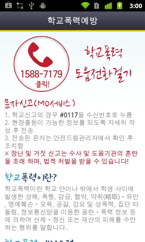기본 메뉴 이외 학교CCTV, 학교폭력예방 컨텐츠 등이 탑재되어 있습니다.