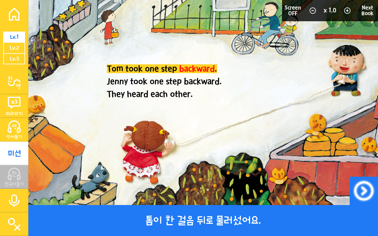 세상에 하나밖에 없는 영어동화. 세계명작부터 창작동화까지, 총 3가지 레벨로 구성된 260권의 영어 스토리북! 영어로 듣기, 한국어로 듣기, 3번따라하기, 녹음, 퀴즈 등의 옵션을 통해 아이 스스로 자발적으로 공부합니다.