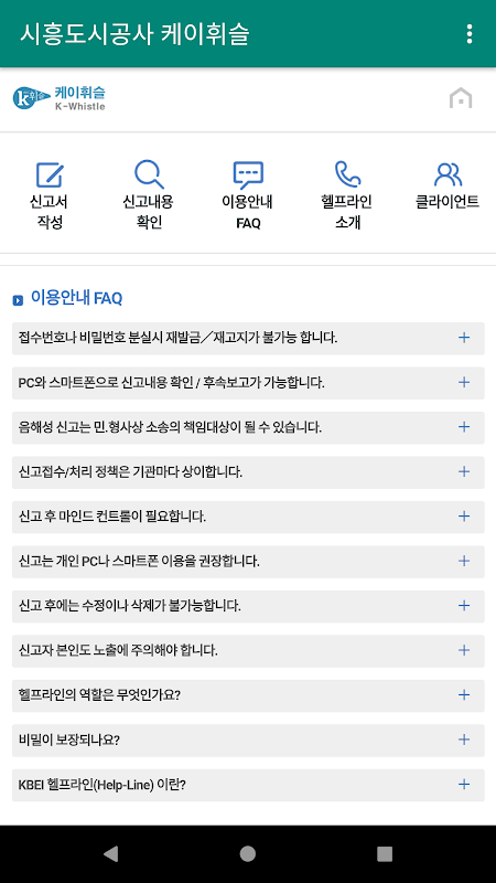 Siheung City Corporation K Whistle یک برنامه گزارش فساد است که با اعتماد به نفس می تواند با کارمندان داخلی یا ذینفعان خارجی گزارش شود.
