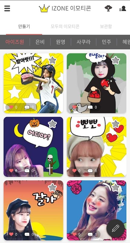 아이즈원 이모티콘 만들기으로 재미있는 이모티콘을 만들어보세요!