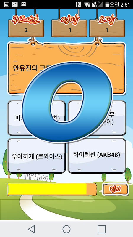 첫 화면에서 시작하기를 터치하시고 다음 화면에 나타난 "Go"를 터치하면 퀴즈 풀기가 시작됩니다. 정답과 오답이 될때마다 "O"와 "X"가 나오는데 이를 터치해야 다음 문제로 넘어갑니다.