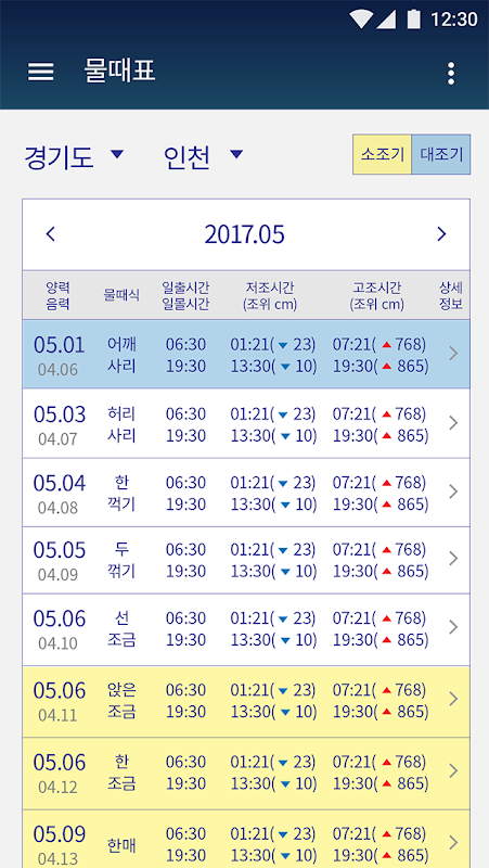 2. 상세조석정보에서 시간별기상정보/물때표로 이동버튼 추가