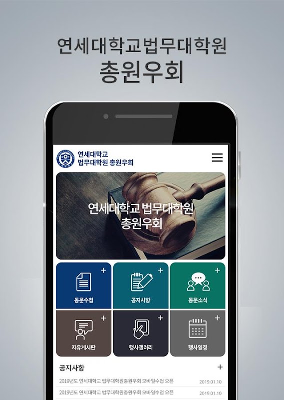 دانشکده حقوق فارغ التحصیل دانشگاه Yonsei یک برنامه تلفن همراه است که به شما امکان می دهد اخبار و اطلاعات فارغ التحصیلان را مشاهده کنید.