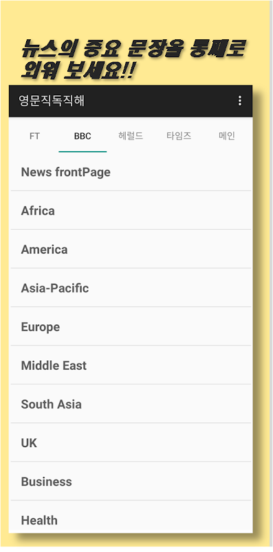 اطلاعات 영어 독해 트레이닝 (영어 신문 받아쓰기) APK