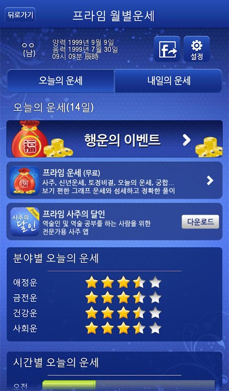 본인의 운세뿐만 아니라 친구들의 운세도 봐 줄 수 있습니다. 모임에서 써먹으면 딱이에요