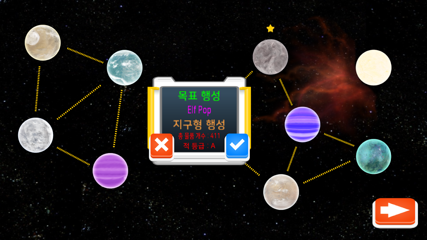 총 10개의 행성에 필요한 자원을 조달하여 식민지 건설 임무를 완성하여야 합니다.