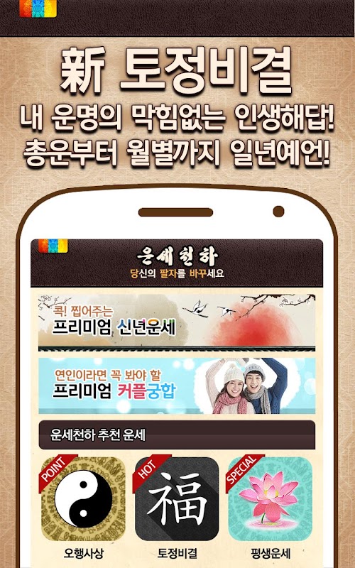 모바일에서 만날 수 있는 고퀄리티 종합 운세앱!