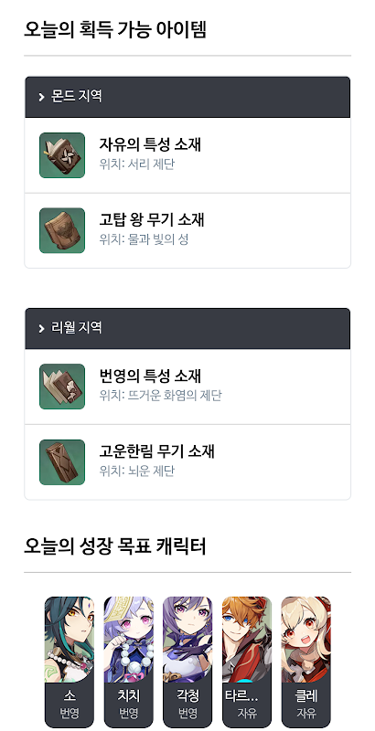 از طریق عملکرد Genshin Today ، می توانید مواد موجود امروز ، شخصیت ها/سلاح های قابل رشد را پیدا کرده و مواد را محاسبه کنید!