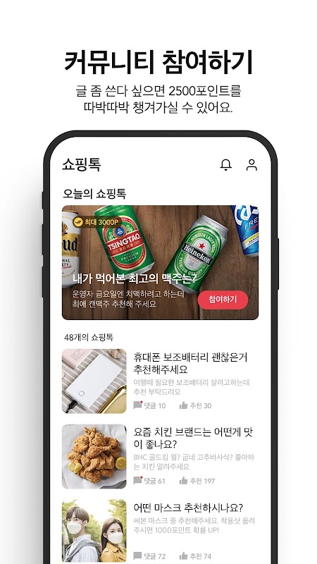 댓글만 써도 최대 1500포인트를 얻을 수 있는 쇼핑톡 오픈!