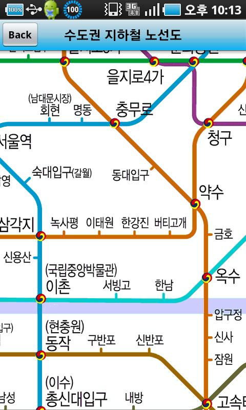 4.노선도의 멀티 터치 기능으로 수도권,부산,대구,광주,대전의 노선도를 확대 축소 하여 보고 최단경로 탐색기능및 도착정보를 바로 확인 할 수 있습니다.