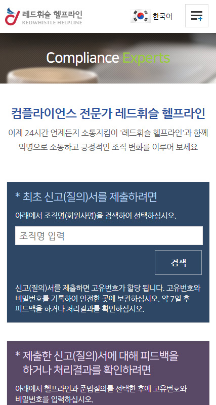 - بیش از 500000 مدیر اجرایی و کارمند از 150 شرکت، از جمله موسسات مالی بزرگ، شرکت های بزرگ، سازمان های اداری مرکزی، دولت های محلی، و شرکت های عمومی در کره، از خط راهنمای Red Whistle استفاده می کنند.