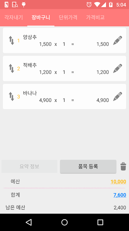 اطلاعات 장바구니 구매목록 각자내기 더치페이 단위가격 APK