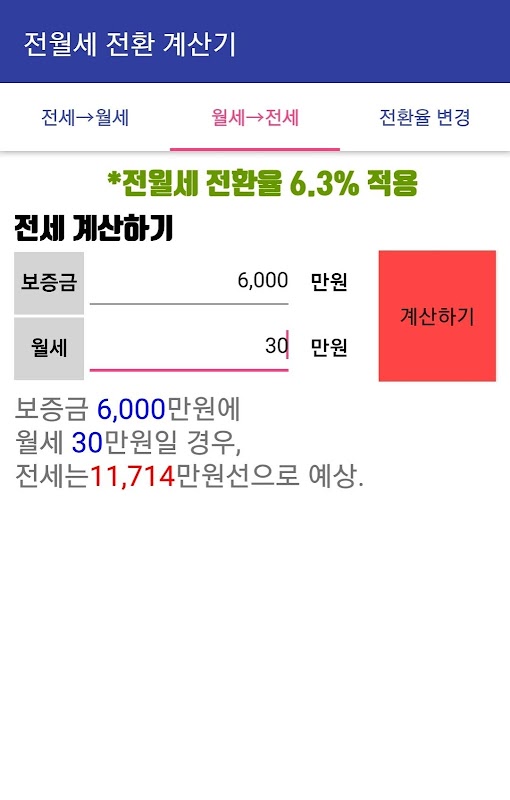 - 전세금 계산, 월세 계산, 보증금 계산 분리