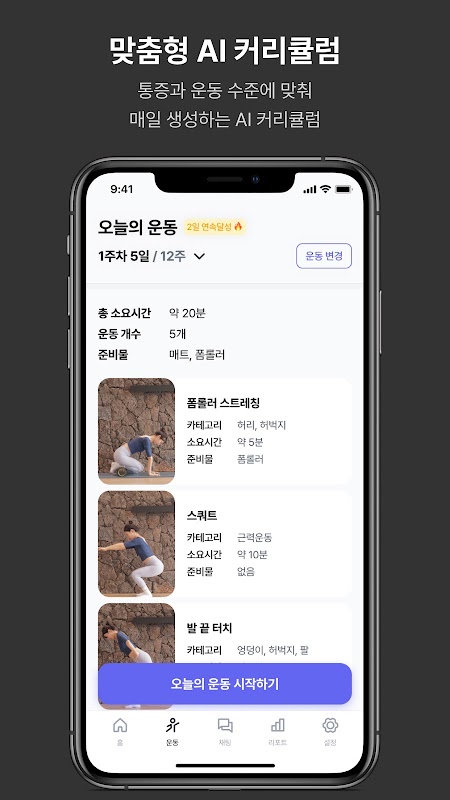 • با توجه به درد و سطح ورزشی که وارد کردم، هر روز یک تمرین جدید توصیه می کنم.