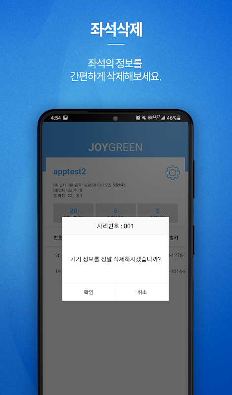 میتوانید بررسی کنید که Joy Green روی تبلت برای هر صندلی اجرا میشود یا خیر، و میتوانید نمره دستگاه را تغییر دهید.