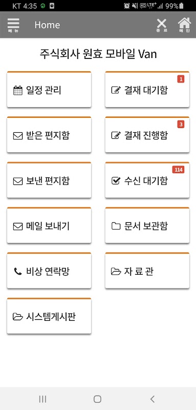 Wonhyo Mobile Van Co.، Ltd. یک برنامه شرکتی است که توسط Good Partners ساخته شده است و می تواند وضعیت یک شرکت را کنترل کند و با استفاده از تلفن هوشمند در هر جای دنیا تجارت را پردازش کند. پست الکترونیکی ، نرم افزارهای گروهی ، ERP ، MES ، POP ، کارخانه هوشمند و سایر عملکردهای سیستم اطلاعات خوب شرکا ، برنامه های یکپارچه ای برای بهبود تجارت شما هستند.