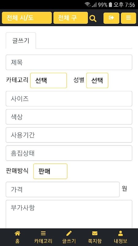 이러한 단점을 보완하고자 거래에 필요한 정보를 필수적으로 입력하여 거래간의 불필요한 대화를 줄이며 거래시간을 단축하는 최고의 중고패션용품앱입니다.