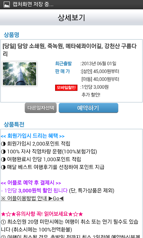 모바일로 예약시 1인당 3,000원씩 할인~!! (단, 일부 상품 제외)