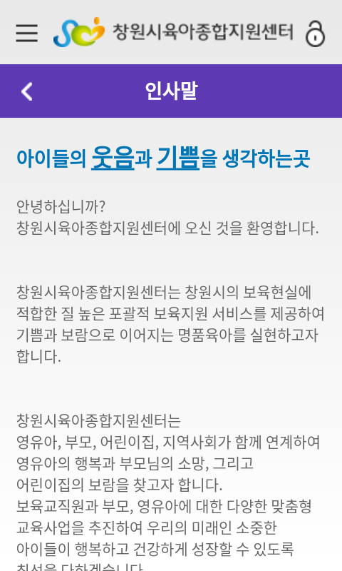 It is Changwon City child care synthesis support center where we think about laughter and joy of children.