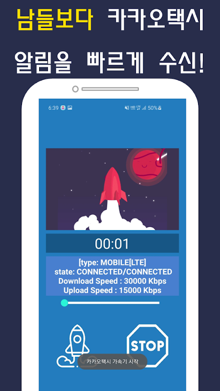 카카오 택시의 알림을 핸드폰에 빠르게 수신하도록 도와주는 앱니다.