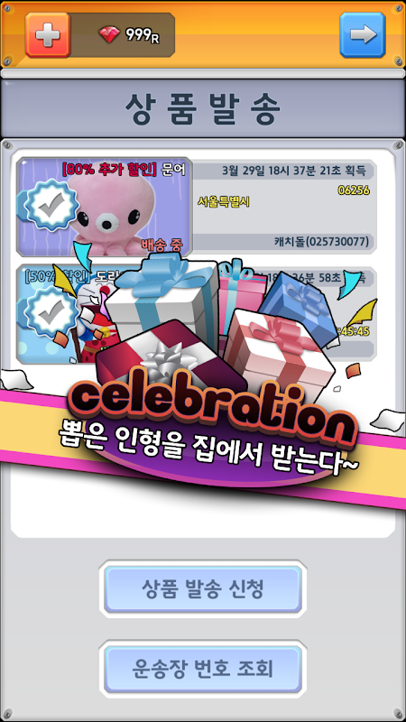 - 획득한 인형은 전국 어디든 원하는 곳으로 배송