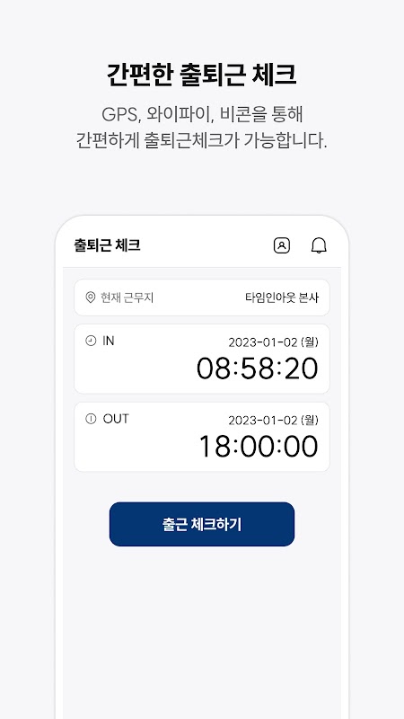 타임인아웃 블루 - 출퇴근체크, 근태관리 1.0.7