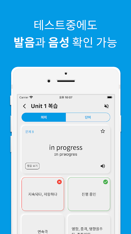 نگران نباش. TOEIC Vocabulary تلفظ کلمات انگلیسی را با استفاده از نمادهای آوایی به شما نشان می دهد و همچنین از صدای انگلیسی پشتیبانی می کند.