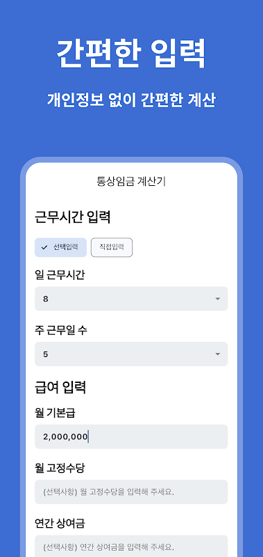 اطلاعات 통상임금 계산기 - 주휴시간, 근로시간, 통상임금 계산 APK