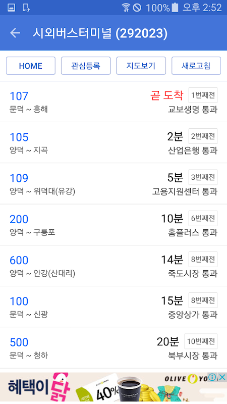 برنامه اطلاعات اتوبوس در شهر Pohang.
