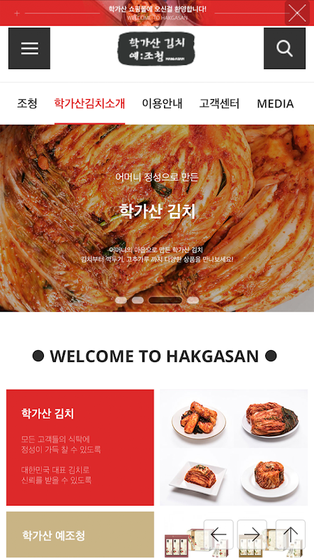 안녕하십니까. 학가산김치&예조청 본사입니다. 배추김치, 백김치, 깍뚜기가 있으며, 생강조청, 도라지조청, 오미자조청도 제조하고 있습니다.