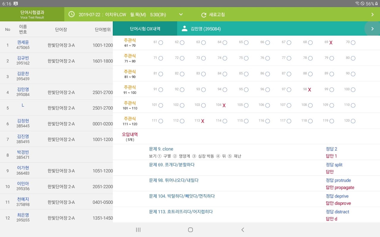 한빛학원 강사 및 직원용 학생관리 앱 입니다.