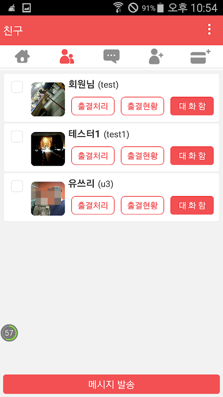 6. 매일 카드를 스마트폰에 접촉하여 출결 체크 및 관리자 공지사항 전송 및 대화