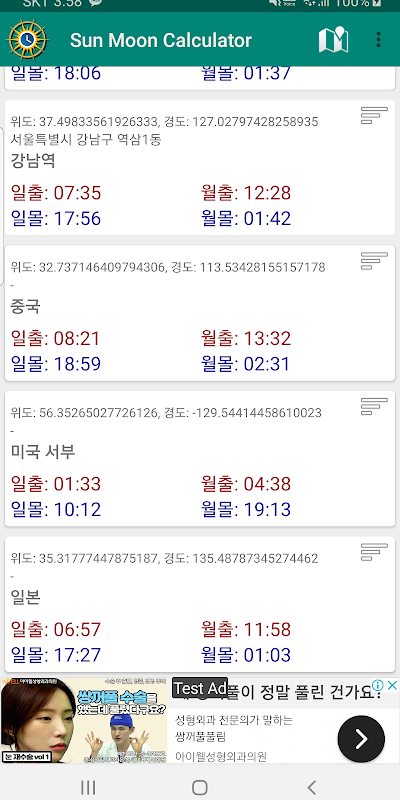 해와달 출몰시간 계산기 - 일출, 일몰, 월출, 월몰 1.2