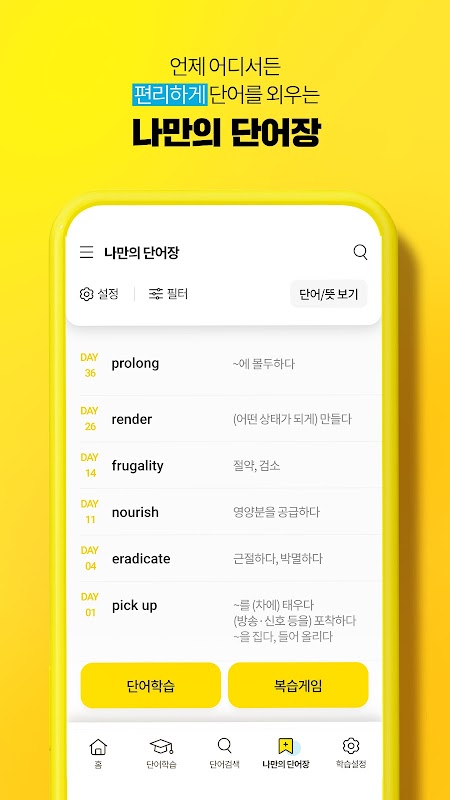 می توانید به راحتی کلماتی را که نتوانسته اید با جمع آوری آنها در یک مکان حفظ کنید و کلماتی را که حفظ کرده اید دوباره مرور کنید.